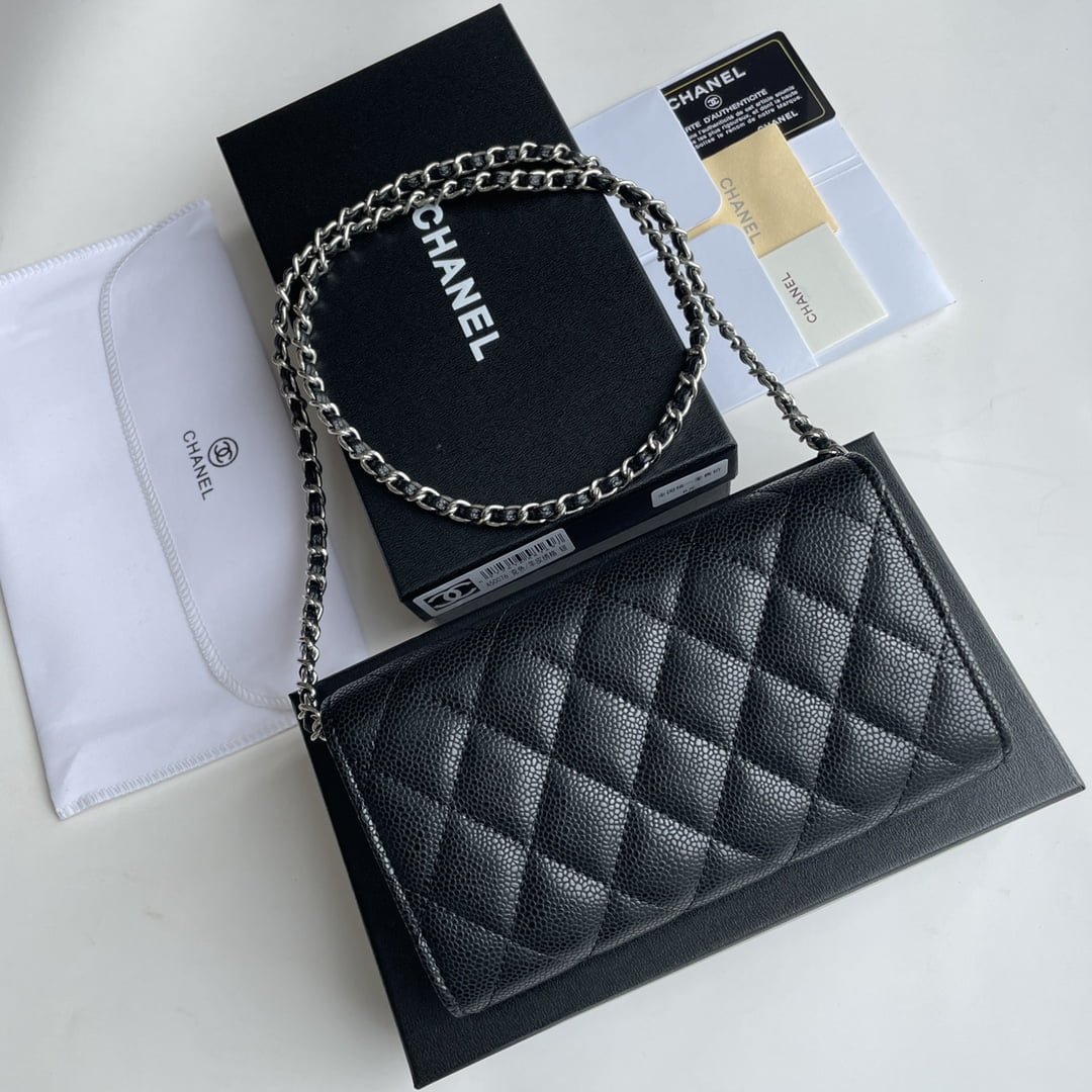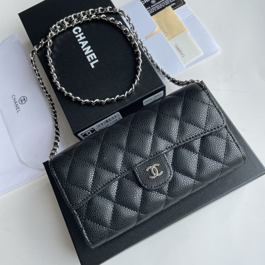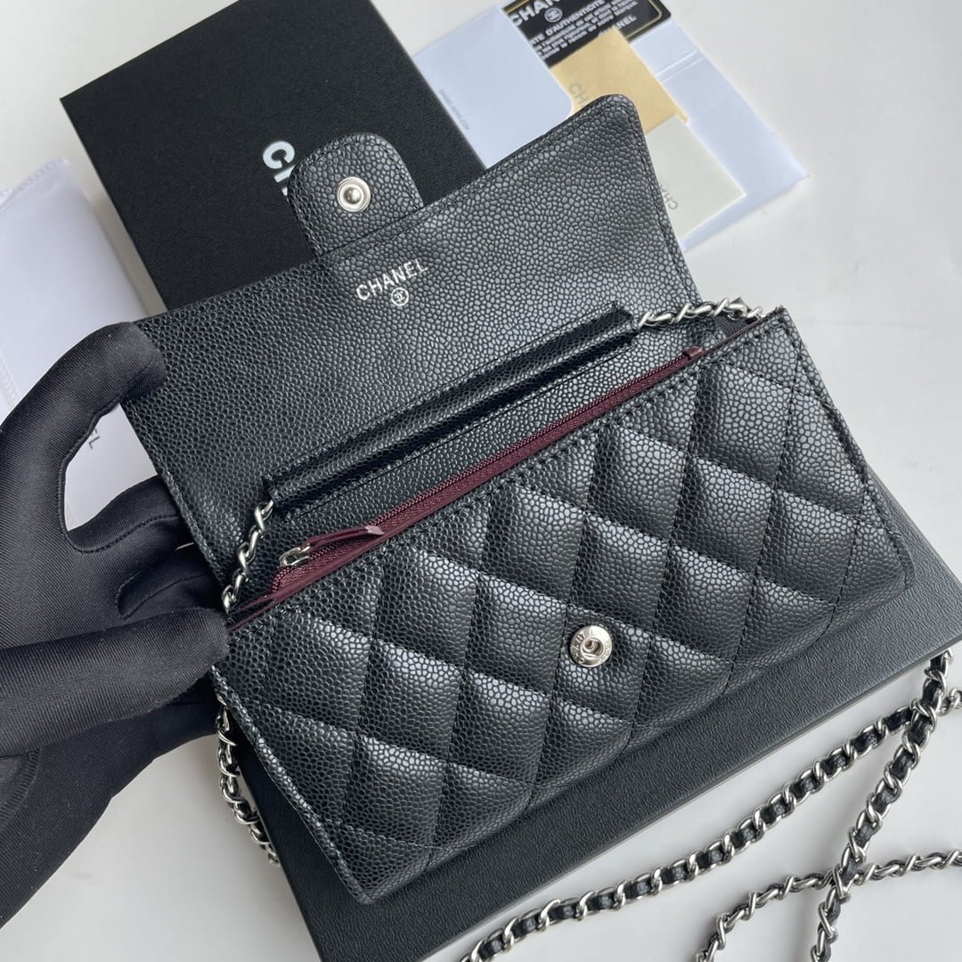 Home BAGS CHANEL Chanel chain crossbody bag Cowhide with diamond lattice caviar Sliver hardware Black A50076 size: 18*10.5*3.5cm