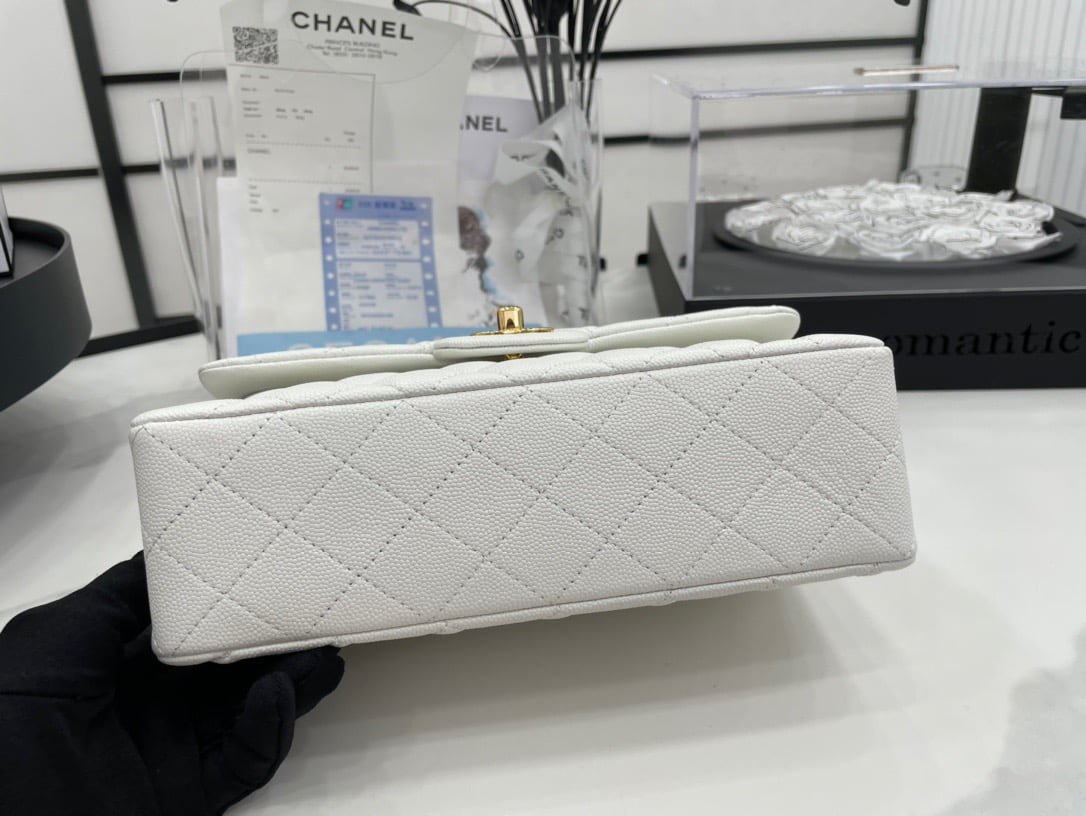 Chanel classic flap caviar leather crossbody bag with gold hardware white