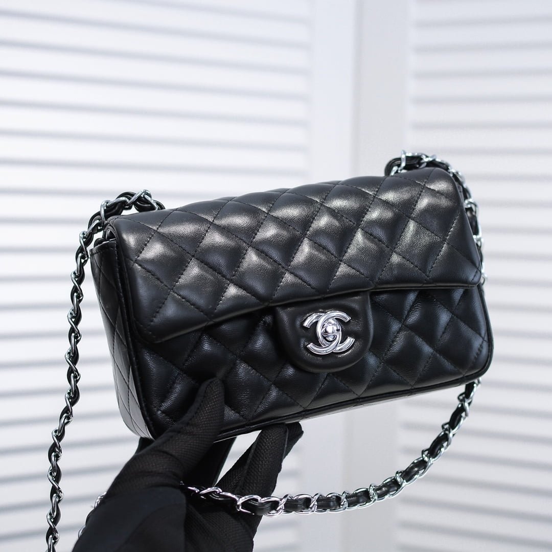 Home BAGS CHANEL Chanel Lamb skin chain crossbody bag with sliver hardware 1116 SIZE: 20*14*7cm/25.5*16*6.5cm/30*18*8cm