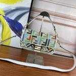 2023 Fendi’s latest baguette bag: very summery; Colorful rainbow 🌈F embroidery colors. This Fendi Baguette is sure to be a trendy item this summer! It looks great on the top; Attendance is also particularly high; It’s absolutely fine for a concave shape. Very lightweight. And its capacity is also very powerful; Easily meet your daily needs. With a short strap and a wide shoulder strap; Can be carried on one shoulder and crossbody. Very versatile. It’s easy to wear no matter what style you have. Carry it and you’ll be the brightest goddess in the crowd. Model F2029 Size 26-5-15CM