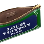The Lexington Pouch is made from calf leather and features an all-over glossy print of a Parisian street-sign that says “Louis Vuitton Paris” in bold white letters. This zipped pouch offers a number of carry options thanks to a detachable chain and a removable, adjustable strap.